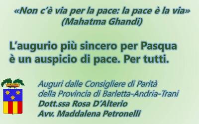 Auguri di buona Pasqua dalle Consigliere di Parità effettiva e supplente della Provincia di Barletta Andria Trani